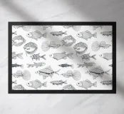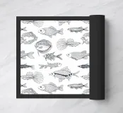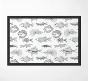 Vari pesci disegnati a mano in Illustrator, motivo vettoriale senza soluzione di continuità