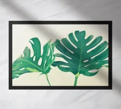 Questo elegante disegno di foglie di monstera porta la natura tropicale in casa vostra. Le foglie verde intenso della monstera aggiungono un'atmosfera fresca ed esotica a qualsiasi ambiente. Perfetto come murale, su tazze o cuscini, il motivo minimalista si abbina perfettamente agli stili di interni moderni, scandinavi o di ispirazione boho. È il design ideale per tutti gli amanti delle piante e fornisce un accento naturale e rilassante a qualsiasi ambiente.