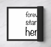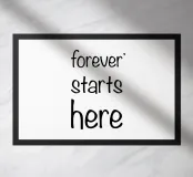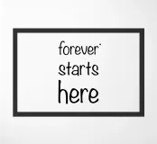 L'eternità inizia qui. Espressione d'amore e di San Valentino. Tipografia in nero e bianco (trasparente). È possibile cambiare il colore dello sfondo. Poster tipografico minimalista.