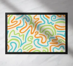 Questo disegno presenta una composizione astratta di linee e forme organiche in colori vivaci. Le transizioni fluide e la disposizione armoniosa conferiscono al motivo un'aura calmante e meditativa.