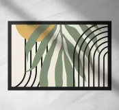 forme astratte foglie linee geometriche linee ad arco cerchio giallo