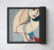 Quest'opera d'arte presenta una composizione contemplativa e introspettiva con un mix di forme geometriche e organiche. La tavolozza dei colori comprende blu, rosso e beige, creando un senso di equilibrio e armonia. La disposizione ponderata di forme e colori ne fa un'opera accattivante.