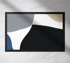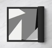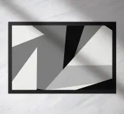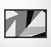 Forme geometriche in varie tonalità di grigio, bianco e nero creano una moderna composizione astratta. Gli angoli acuti e i toni contrastanti esaltano la dinamicità del disegno.