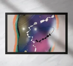 Forme astratte in colori tenui sono collegate tra loro da sottili linee nere, creando una composizione dinamica. Il disegno incorpora varie forme geometriche e organiche, aggiungendo un senso di equilibrio e movimento.