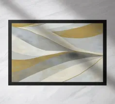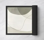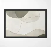 Una delicata opera d'arte astratta minimalista caratterizzata da forme verdi e linee sottili. Il sottile gioco di forme e spazi negativi crea una composizione serena e armoniosa. Con la sua sobria eleganza e l'estetica moderna, questo pezzo invita alla contemplazione ed evoca un senso di tranquillità e raffinatezza.