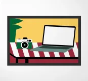 Scatenate la vostra creatività! Illustrazioni ispirate a fotocamere e laptop. Design perfetto per blogger, fotografi, videografi e tutti i creatori di contenuti.