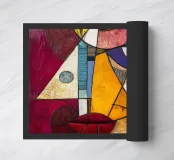 Un ritratto audace e vibrante di ispirazione cubista, ricco di colori e texture. Fragmented Vision reimmagina il volto umano attraverso l'astrazione geometrica: piani sovrapposti di cremisi, ocra, smeraldo e viola creano un senso di complessità emotiva e dinamismo moderno. L'occhio espressivo attira l'attenzione, ancorando il caos in un unico momento di consapevolezza. Un pezzo forte per gli amanti dell'arte contemporanea e astratta.