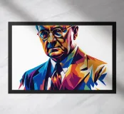 Celebrate la leadership e l'eredità di Franklin D. Roosevelt con questo vivace disegno Pop Art WPAP. Utilizzando audaci forme geometriche e un'accattivante tavolozza di colori, quest'opera d'arte reimmagina l'iconico Presidente degli Stati Uniti in uno stile moderno e astratto. La tecnica WPAP (Wedha's Pop Art Portrait) dà vita all'immagine di Roosevelt, riflettendo la sua resilienza e il suo impatto trasformativo durante un periodo storico cruciale. Perfetto per gli appassionati di storia, politica e arte, questo disegno è un tributo unico a uno dei leader più influenti d'America.