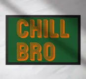 "Chill Bro" - un'allegra espressione tipografica che celebra l'amicizia e le vibrazioni rilassate. Perfetto come poster verde-arancio di tendenza per i vostri interni!