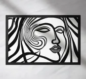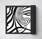 Schwarz Weißes Frauengesicht aus Linien und Mustern. Mit KI generiert (Canva).