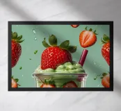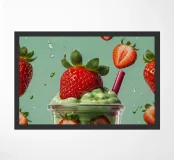 Un rinfrescante frullato verde menta con fragole fresche, servito in un elegante bicchiere, che crea una deliziosa e vivace delizia estiva.