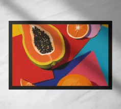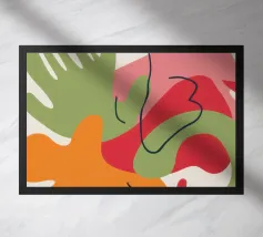 Un'opera d'arte astratta vibrante ed espressiva con una fusione di colori audaci di ispirazione fauvista come il magenta, l'arancione e il nero. Le pennellate e le forme energiche creano un'opera dinamica e appassionata.