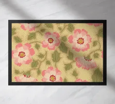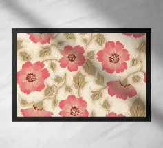 Un motivo ripetuto di garofani rosa brillante con petali stratificati offre un senso di nostalgia e fascino decorativo.