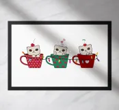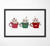 Simpatici gattini con tazze di caffè Design di Buon Natale
