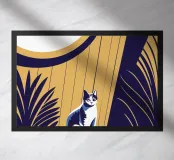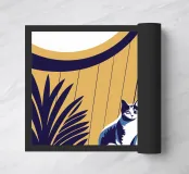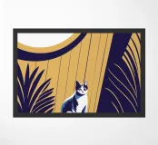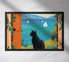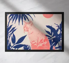 Decorate la vostra casa con questo design unico che raffigura un simpatico gattino che si fa coccolare da splendidi fiori.
