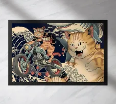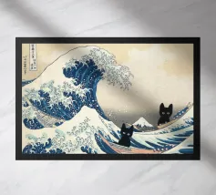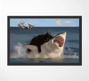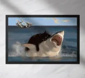 gatto squalo veliero oceano onde bocca aperta gatto nero mare cielo nuvole nave acqua superficie dell'oceano movimento interazione animale azione umorismo natura vita marina nautico