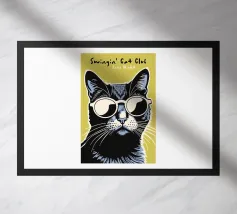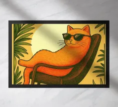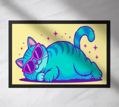 Questa gatta sa quello che vale e dare la caccia ai topi non è certo nei suoi programmi! Con la sua posa disinvolta e gli occhiali da sole viola, è il simbolo perfetto di serenità, stile e una buona dose di fiducia in se stessa. Il design moderno e minimalista combina una precisa illustrazione in bianco e nero con un chiaro accento di colore viola. Questa combinazione appare sofisticata, attenta alle tendenze e giocosa allo stesso tempo; perfetta per chi unisce l'umorismo allo stile. Un must per i fan dei gatti, gli amanti del design e tutti coloro che sanno cosa vogliono: La vera coolness non ha bisogno di sforzi.