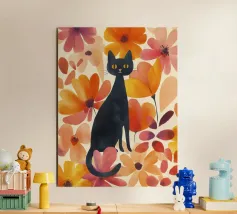 Portate un tocco di giocosa magia nel vostro spazio con questa stravagante illustrazione di gatto nero, ornata da vivaci fiori di ispirazione boho in calde tonalità acquerello. Con il suo fascino incantevole e la tavolozza accogliente, quest'opera d'arte irradia personalità e cuore, rendendola un'aggiunta deliziosa a qualsiasi stanza. Perfetta per gli amanti dei gatti, gli interni boho e le idee regalo uniche, aggiunge un tocco artistico sia all'arte da parete che agli accessori di uso quotidiano.