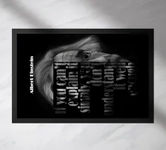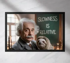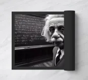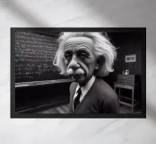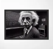 Albert Einstein davanti ai suoi appunti di genio. Una caricatura della straordinaria mente scientifica.