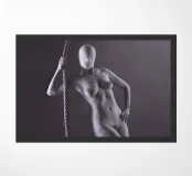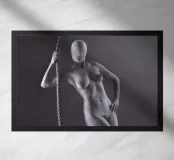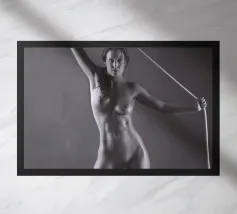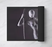 Uno scatto di nudo artistico fetish di una giovane donna con la testa fasciata in posa con una pesante corda