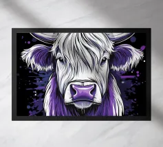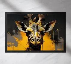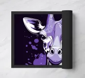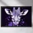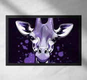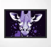 Una giraffa insolitamente messa in scena guarda l'osservatore con un sorriso affascinante - il tutto nei toni del viola e della lavanda, con uno sfondo di spruzzi di colore. Questa opera d'arte pop e giocosa si distingue chiaramente per la scelta dei colori e la rappresentazione astratta. È ideale per gli spazi moderni, le stanze dei giovani o gli uffici creativi ed è particolarmente interessante per le persone che amano le illustrazioni di animali insoliti o la pop art colorata.