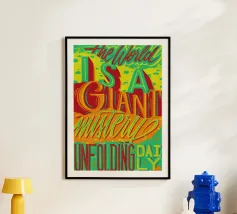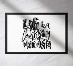 Born in 1991, Guillaume is a French designer whose artistic work revolves around the letter. Inspired by urban art from an early age, he made his first tags in the streets in 2001, beginning a journey of artistic exploration that continued with wall painting in 2004. His regular practice of graffiti and passion for imagery led him to experiment with various forms of design. Over the years, he has worked as an art director, calligrapher, and copywriter, providing creative guidance often centered around the use of text. Today, his work goes further as he chooses to use lettering as an artistic medium to convey poetic and thought-provoking messages. He creates an increasing number of works to reveal a form of lettering that is universal, poetic, and accessible. For him, shaping clear and resonant messages is a way to enhance both collective and private spaces, while nurturing a positive connection with the viewer.
