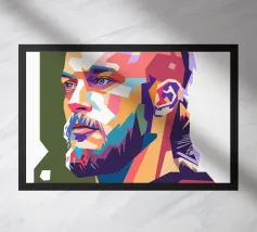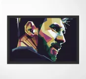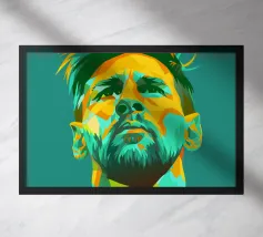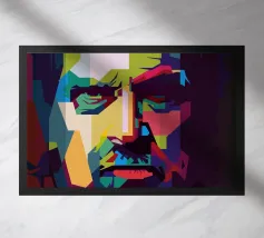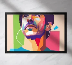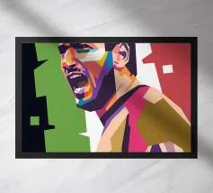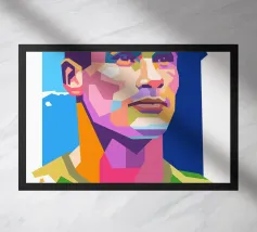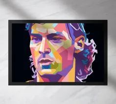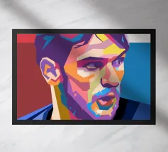 Lionel Messi in stile WPAP è un ritratto sorprendente e colorato del leggendario calciatore, creato utilizzando forme geometriche nitide e toni vivaci. Questo pezzo pop art cattura i tratti iconici e il carisma pacato di Messi, celebrando la sua grandezza attraverso l'audace linguaggio visivo di WPAP (Wedha's Pop Art Portrait).
