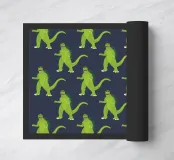 Questo disegno di Godzilla è un pezzo unico che cattura la potenza dell'iconico mostro in modo creativo. L'opera d'arte presenta un motivo ripetuto di illustrazioni stilizzate di Godzilla. L'artista (kathrinmay) ha prestato attenzione ai piccoli dettagli.