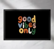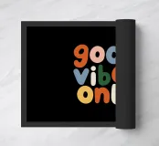 Elevate il vostro spazio con questa vivace stampa tipografica "Good Vibes Only". Le scritte disegnate a mano in un arcobaleno di rosso, giallo, rosa, verde e blu spiccano su un elegante sfondo nero, creando un impatto visivo sorprendente. Questo pezzo accattivante irradia positività e serve come promemoria quotidiano per abbracciare i momenti di gioia della vita. Perfetta per aggiungere un tocco di colore e di ottimismo a qualsiasi ambiente, questa stampa è un regalo ideale per chi vuole infondere all'ambiente circostante energia e stile moderno.