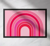 good vibes art, design arcobaleno rosa, estetica retrò, grafica allegra, messaggio edificante, stile minimalista colorato
