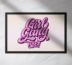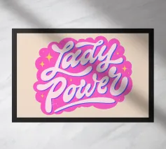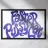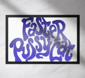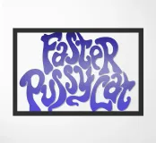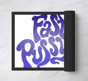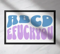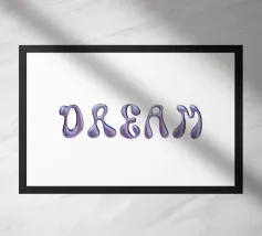 Questa vivace opera d'arte da parete presenta uno stile tipografico audace e groovy ispirato all'estetica retrò degli anni '70, con lettere lisce e ondulate riempite da un sorprendente gradiente blu-viola.