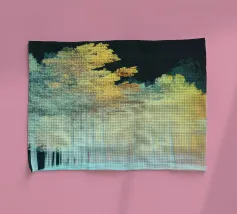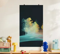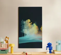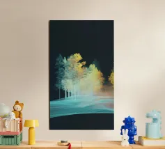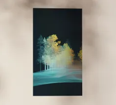Una fusione ipnotica di natura e luce, Luminous Grove trasforma una scena di foresta in un etereo paesaggio digitale. Tonalità luminose di ciano, ambra e oro scorrono come energia attraverso alberi traslucidi, catturando la delicata intersezione tra vita organica e astrazione digitale. I gradienti morbidi e il movimento fluido evocano serenità, meraviglia e un senso di calma ultraterrena.