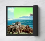 Dinosauri che vibrano sulla Terra, finché uno di loro non inizia ad avere una strana sensazione (sta arrivando un meteorite). Collage surreale e divertente di MsGonzalez.