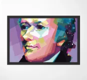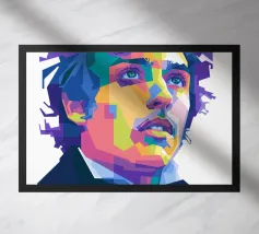Alexander Hamilton in stile WPAP è illustrato utilizzando forme audaci e spigolose e colori vivaci e contrastanti che trasformano la sua immagine storica in una visione dinamica e moderna. Il disegno geometrico mette in risalto i suoi lineamenti affilati, i capelli incipriati e l'abbigliamento formale, fondendo l'eleganza classica con l'energia contemporanea della pop-art, a simboleggiare il suo impatto duraturo sulla storia americana.