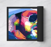 Hank Williams Jr. in WPAP (Wedha's Pop Art Portrait) è una rappresentazione vibrante e geometrica del leggendario cantante country. Questo stile artistico utilizza colori audaci e contrastanti e forme spigolose per creare un ritratto astratto e moderno, pur mantenendo le sue caratteristiche riconoscibili.