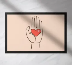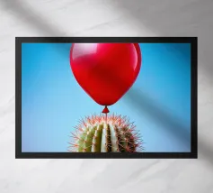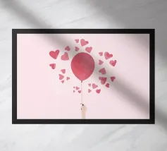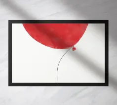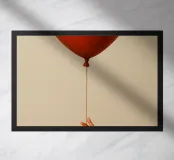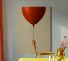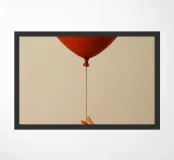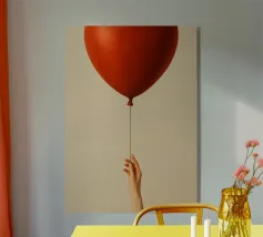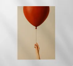 Un primo piano di una mano che stringe delicatamente il cordoncino di un grande palloncino color terracotta opaco, a forma di cuore. La composizione semplice e i toni morbidi e caldi creano un'immagine intima e un po' tenera, che si concentra sul legame tra la mano e il palloncino simbolico.