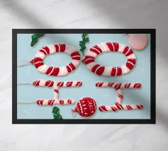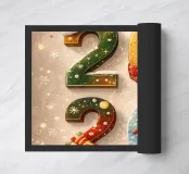 Bold, colorful numbers ring in the new year with holiday sparkle, festive textures, and a cozy village below. Say goodbye to the old and celebrate what’s next in style.