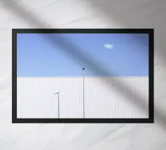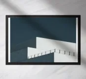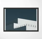 Ispirato a un edificio iconico di Helsinki, questo poster gioca con i volumi, le texture e il netto contrasto tra il bianco e il blu petrolio. Cattura la potenza visiva dell'architettura finlandese in uno stile radicalmente minimalista.
