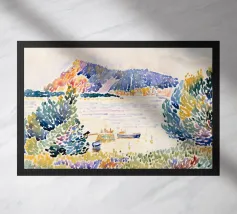 Scoprite la vibrante bellezza di una calanca mediterranea catturata nello stile puntinista di Henri-Edmond Cross. Questo poster d'arte, probabilmente intitolato "Calanque des Antibois", raffigura una piccola baia pittoresca vicino ad Antibes con rocce colorate, acque tranquille e barche che riposano sulla riva. La tecnica tipica dell'artista, che consiste nell'applicare colori puri in punti distinti, crea una superficie vivace e strutturata che risplende di luce. Prodotto come arte digitale di alta qualità a 7000x5000 pixel e 300 dpi, garantisce una rappresentazione fedele dei colori brillanti e dei dettagli più fini per un'opera d'arte di qualità.