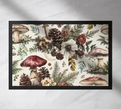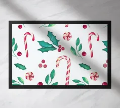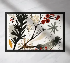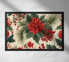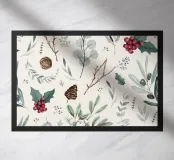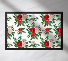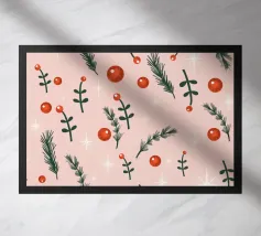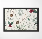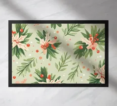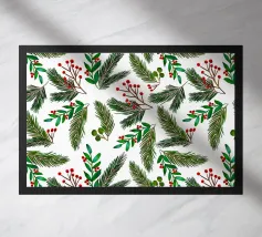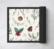 Pattern di elementi natalizi come pigne, agrifoglio, vischio ed eucalipto.