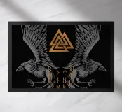 Un potente simbolo della mitologia norrena: due corvi dettagliati con le ali spiegate incorniciano il Valknut - antico simbolo di Odino - mentre misteriose rune scorrono sulle piume. La raffigurazione ad alto contrasto in nero e oro trasmette forza, saggezza e profondità spirituale. Ideale per gli appassionati di leggende nordiche, estetica vichinga o simbolismo spirituale. Questo motivo è particolarmente adatto a studi, spazi di lavoro o come parte di una collezione mistica.