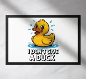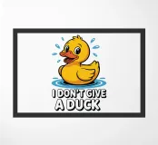 Un allegro anatroccolo giallo siede in una piccola pozza d'acqua, circondato da schizzi. Sotto, la scritta "I DON'T GIVE A DUCK".