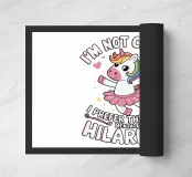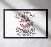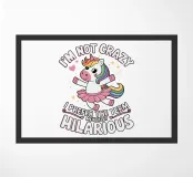 Un unicorno colorato vestito con un tutù danza circondato da stelle e cuori. Il testo in grassetto afferma con umorismo: "Non sono pazzo, preferisco il termine mentalmente esilarante".