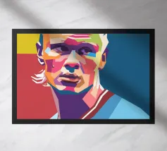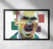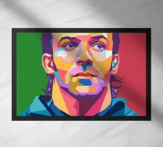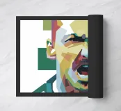 Ibra in stile WPAP è un sorprendente ritratto geometrico che mette in risalto la personalità audace e i tratti iconici del calciatore. Utilizzando colori vivaci e linee poligonali nitide, l'opera d'arte WPAP (Wedha's Pop Art Portrait) cattura l'espressione sicura e la presenza potente di Zlatan, simboleggiando il suo status leggendario e il suo atteggiamento impavido dentro e fuori dal campo.