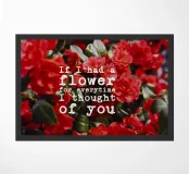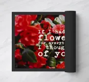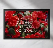 Una poesia visiva di colori ed emozioni: fiori rossi brillanti su uno sfondo verde lussureggiante fanno da sfondo alla scritta bianca "If I had a flower for everytime I thought of you" (Se avessi un fiore per ogni volta che ho pensato a te), una frase che oscilla come un pensiero silenzioso tra nostalgia e affetto. La composizione vive del contrasto tra l'intensità floreale e la chiarezza tipografica. Sembra un momento catturato, personale e universale allo stesso tempo.