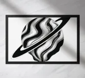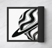 Questa straordinaria illustrazione ad alto contrasto presenta una versione surreale e astratta di Saturno. La superficie del pianeta è rappresentata con motivi ondulati, simili a onde, che creano un senso di flusso dinamico e di tumulto interiore. L'elemento più accattivante è l'effetto "pianto", in quanto il pianeta sembra sciogliersi e gocciolare nel vuoto, con i suoi famosi anelli a fare da contrappunto elegante e crudo. La tavolozza in bianco e nero, combinata con il lavoro di stippling e di linee, conferisce una qualità unica, disegnata a mano, perfetta per coloro che apprezzano l'arte spaziale con un tocco oscuro, emotivo e introspettivo. Questo pezzo sarebbe un id