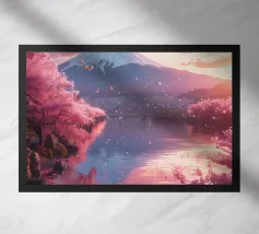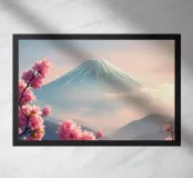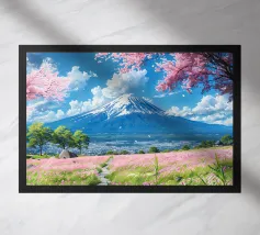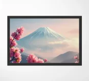 Una vista mozzafiato del maestoso Monte Fuji che si staglia nel cielo limpido di primavera. In primo piano, delicati fiori di ciliegio (sakura) danzano nel vento, conferendo alla scena una poetica leggerezza. La combinazione tra la forza della natura e la bellezza dei fiori simboleggia la transitorietà, l'armonia e il profondo legame tra la cultura giapponese e la natura. Questa immagine cattura perfettamente la magia della stagione della fioritura dei ciliegi, ideale per opere d'arte da parete, calendari o diari di viaggio. Suggerimento: perfetto per tutti coloro che sognano di viaggiare o che vogliono portare un pezzo di tranquillità e di estetica giapponese nella loro casa.