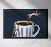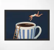 Un'audace immersione nel mondo del caffè: questa fantasiosa illustrazione cattura l'essenza del risveglio energico e amante della caffeina. La scena è al tempo stesso poetica e umoristica, e rievoca quel momento in cui il caffè diventa una vera e propria ancora di salvezza mattutina. Un'immagine originale, perfetta per gli appassionati di caffè, di arte surrealista e di evasione creativa. Aggiungete un tocco di energia e fantasia alla vostra casa.