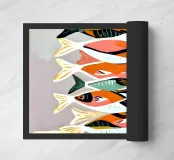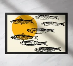 Vi presentiamo la nostra incantevole stampa fine art con un delizioso gruppo di sardine colorate eclettiche e stravaganti. Questa vibrante opera d'arte cattura l'essenza giocosa di questi affascinanti pesci, ognuno dei quali è ornato da una tavolozza unica di tenui colori pastello che danzano sulla tela. Le sardine, con le loro espressioni stravaganti e i loro disegni fantasiosi, portano un senso di gioia e di estrosità in ogni spazio.