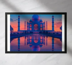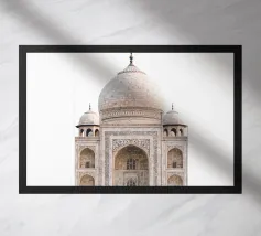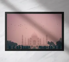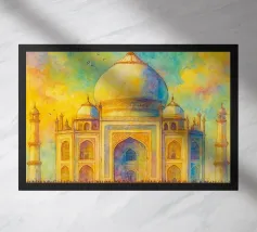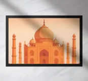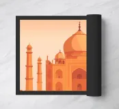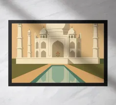 Minimalistisches Indien Reise-Design mit dem bekannten Taj Mahal Mausoleum. Typische Sehenswürdigkeit Indiens in der Stadt als ideale Geschenkdiee für alle, die gerne nach Indien reisen.
